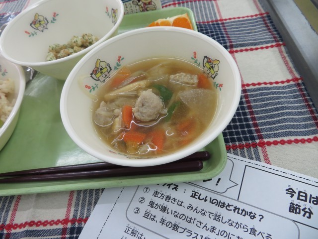 いわしのつみれを作り、汁物にたっぷりと入れました。