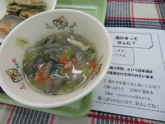 この日本酒をつくるときにできた酒粕を給食で使い、