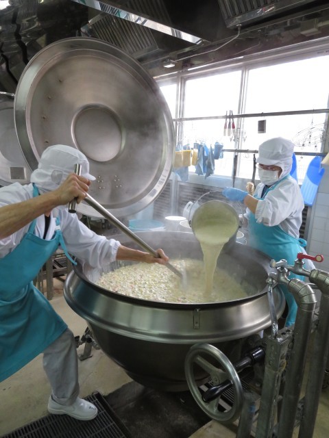 牛乳にココア、さとう、コーンスターチを加え加熱し、