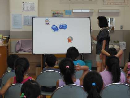 パネルシアターでは、教員の語りに、子供たちが引き込まれ、たくさん笑いが起きていました。