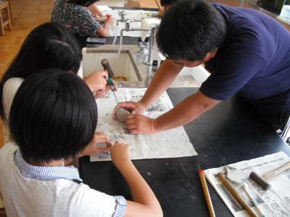 わくわくスクール4日目は、「パネルシアターとアニマシオン」、「化石を発掘しよう」の教室がありました。