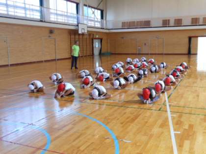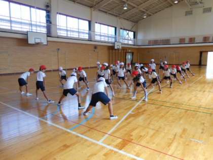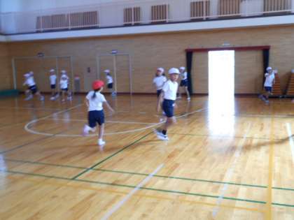 準備運動で「鬼ごっこ」も楽しく出来ました。