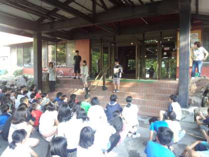 今日も定刻前に全員集まりました。これから、源泉まで散歩です。
