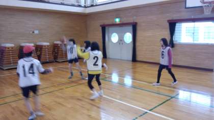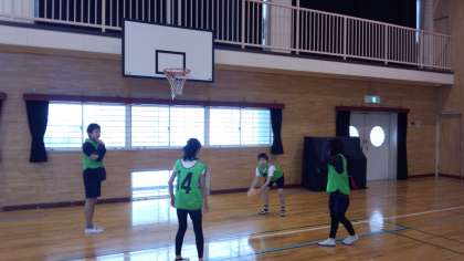 寒い日でしたが、体育館で元気にバスケットボールです。