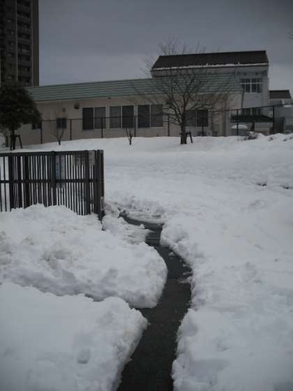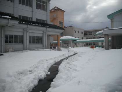 本日、学童職員、教職員で雪かきをしましたが、車両が入れる通路は