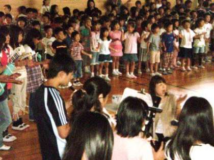 演奏にあわせて全員合唱。アルトの部分は、先生方がサポート。