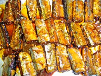 きょうは、煮魚です。さんまを梅干しと一緒にことこと煮ました。骨まで軟らかく煮て、みりんで照りを出して・・お箸で骨も切れます。