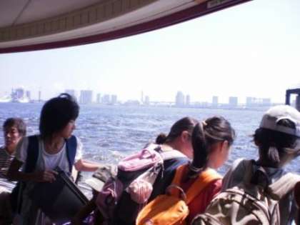 水上バスで次に見学する浅草に向かいました。水上バスからも東京湾の様子や隅田川に架かっているたくさんの橋を身近にみることができました。