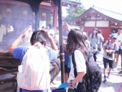 浅草寺では、お線香の煙をよくなってほしいところになでつけたり