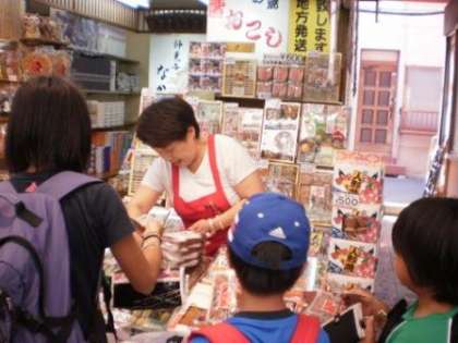 仲見世でのお買い物は、人形焼が一番人気。おまけしてくれたよ、とうれしそう。
