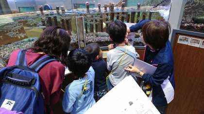 餌やり体験では、コイやウグイが勢いよく食べにくるので、みんな驚いていました。