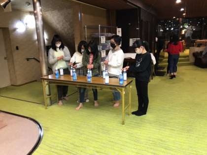 もうすぐ夕食です。お宿ではアルコールを用意してくださっていて、食堂に入る前にはしっかり消毒をしています。