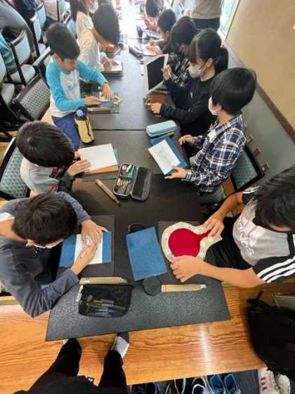 日光彫りに挑戦しています。真剣に取り組んでいる姿に注目してください。