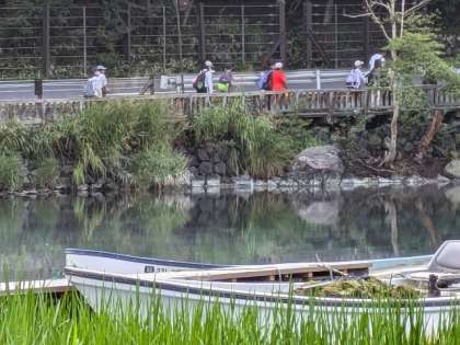 湯の湖畔を歩いて、湯滝下を目指します。