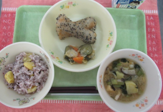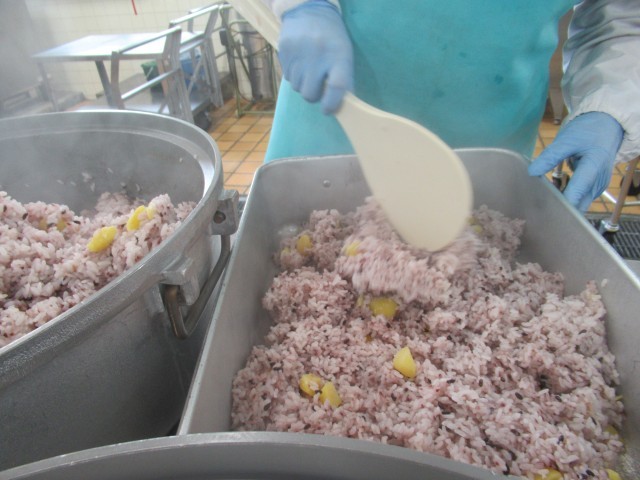 秋月ごはんは黒米を入れて色づけしたごはんに、