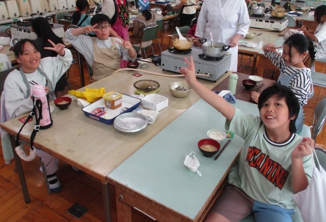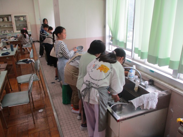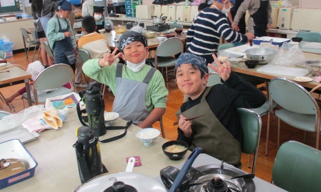 どの班も作ったご飯とお味噌汁をおいしそうにたべ、全員が完食していました。また、片付けにも積極的に取り組む姿が見られました。