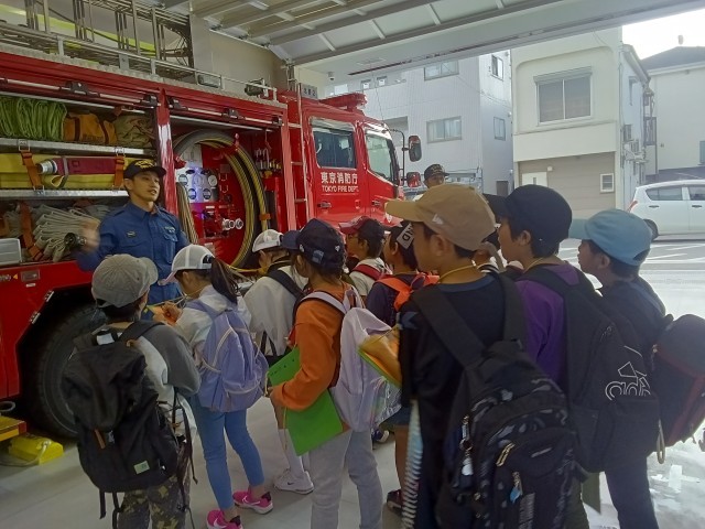 10月28日(火)3年生が八王子消防署北野出張所に見学に行きました。子供たちは消防士の皆さんのお話を熱心にメモをとりながら聴いていました。見学の途中で、消防車の出動もあり、みんなの命を守るために働いている姿を見て感動し、「かっこいい」とつぶやいている子がいました。将来消防士さんになろうかなと言っている子もいました。北野出張所の皆さん、ありがとうございました。