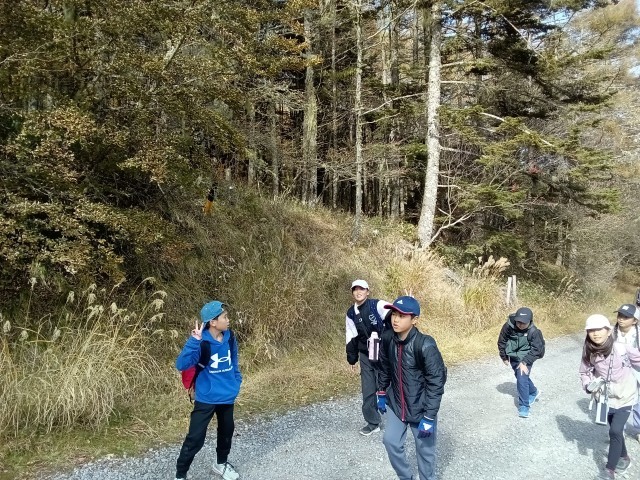 行動班でのハイキングです。思ったより寒くなく、とても爽やかです。