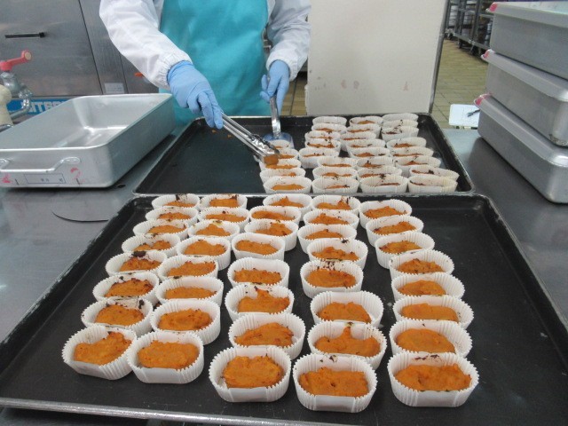 色のかぼちゃをくりぬいて作った提灯を飾ります。かぼちゃには、カロテンという