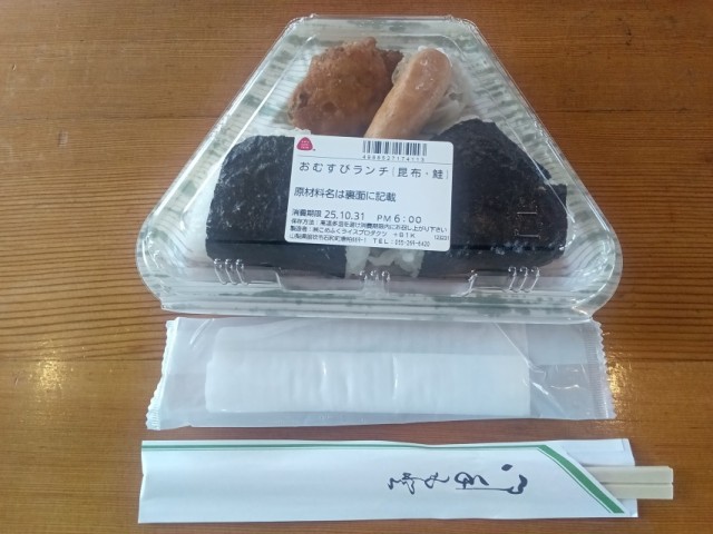 昼食のおにぎり弁当です。この後は、楽しみにしていたソフトクリームとお土産購入です。