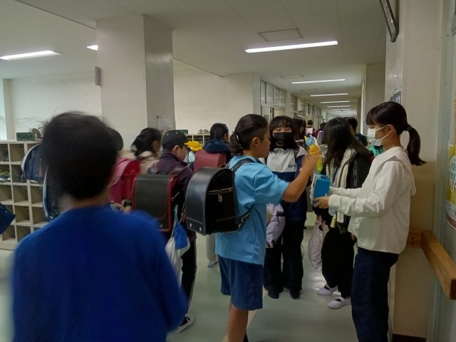 11月10日(月)代表委員会が行っている「赤十字募集」の最終日となりました。本日もたくさんの児童が募金をしていました。ご協力ありがとうございました。代表委員の皆さんも、よくがんばりました。