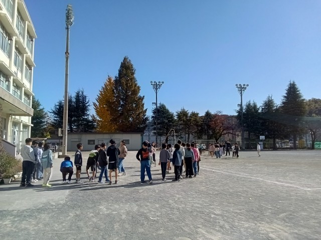 11月10日(金)体育委員会を中心に、元気アップタイムを行いました。中休みに、全校で長縄跳びに挑戦しました。クラスごとに取り組み、子供たちはみんなで息を合わせて、リズムよく頑張っていました。来週水曜日には、記録会が予定されています。体力向上の取組にもなっています。