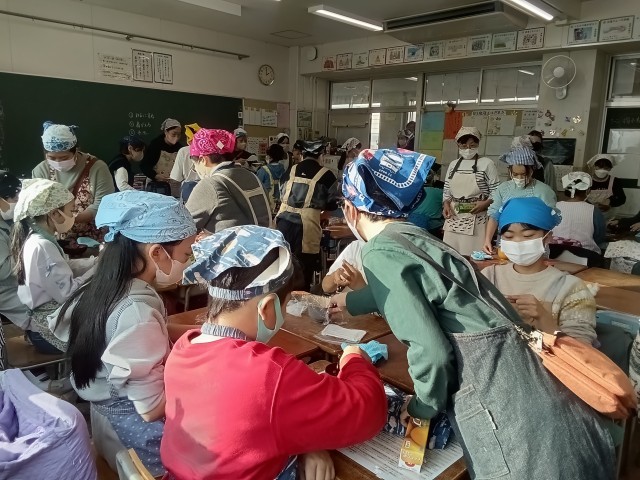 12月3日(水)5年生が、保護者の皆様と一緒に、おにぎりPartyをしました。5年生の子どもたちは、地域の方のご協力を得て、春から米づくりに取り組んできました。秋に収穫したお米でおにぎりを作って、みんなで収穫を祝いました。長沼の田んぼで育ったお米は、とてもおいしかったです。子どもたちは、みんな熱心に嬉しそうに活動していました。この取組は、長沼小の交流及び共同学習で、ひまわり学級の子どもたちと一緒に取り組んでいます。地域の方や保護者の皆様に感謝しています。
