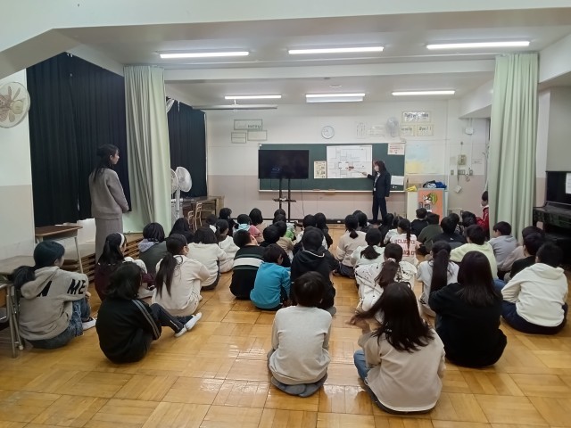 12月19日(金)5年生の児童に向けて、自転車安全教室を行いました。八王子市交通事業課の方にご指導いただきました。令和8年4月1日から自転車の交通違反に交通反則通告制度(青切符制度)による取締りが導入されます。自転車の安全利用のためにも、自転車のルールやマナーを理解することが大事です。子供たちは、熱心にお話を聴いていました。