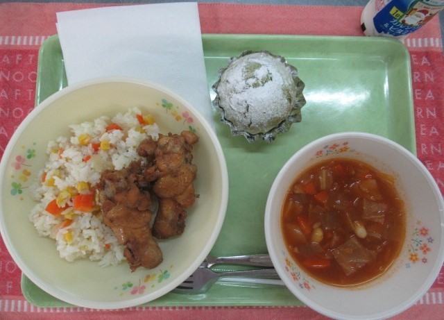 今日はクリスマス献立です。八王子産の桑の葉粉を生地と