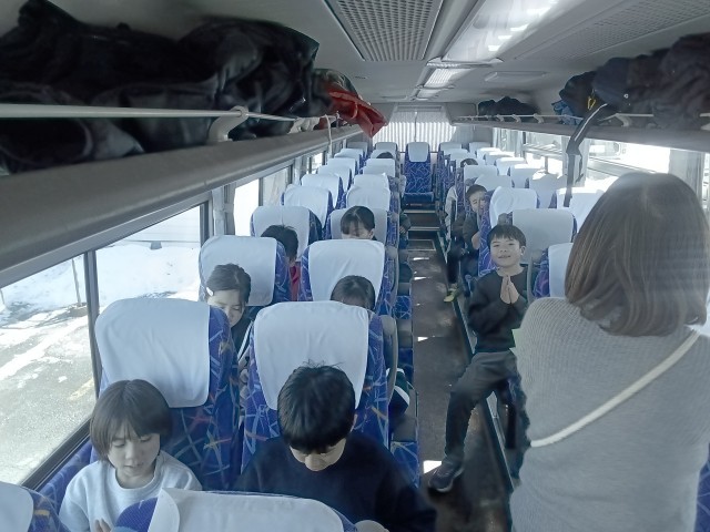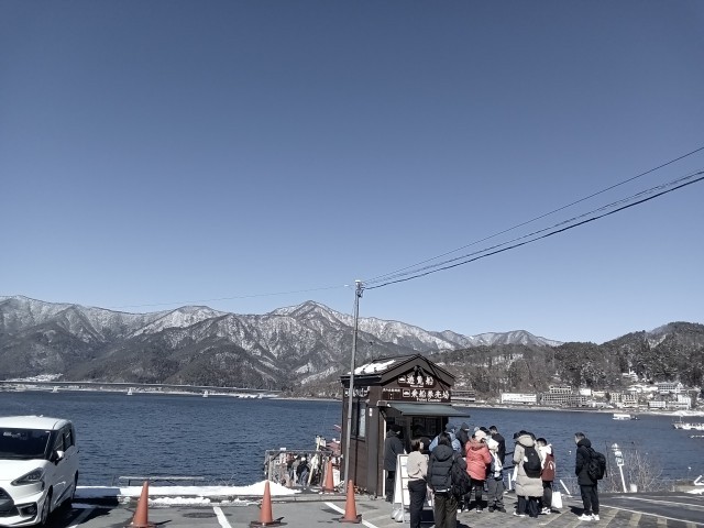 河口湖に到着し、バスの車内でお弁当を食べました。ご準備いただき、ありがとうございました。この後、遊覧船に乗ります。