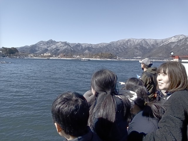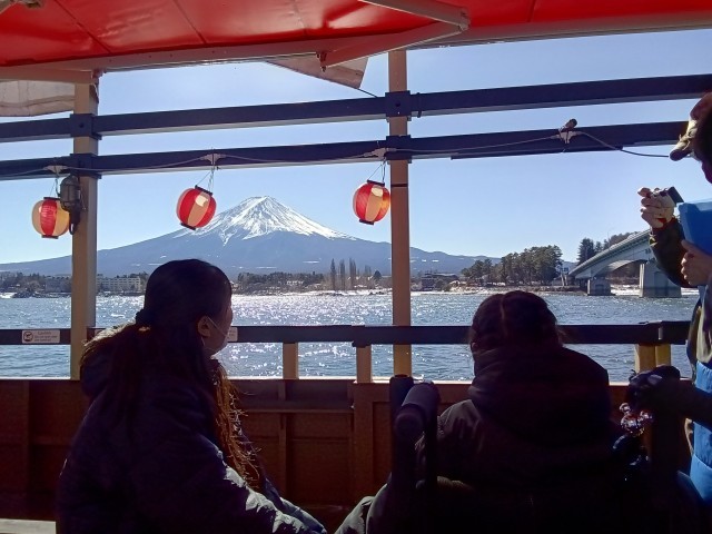遊覧船に乗りました。景色は最高ですが、かなり寒いです。富士山がよく見えました。