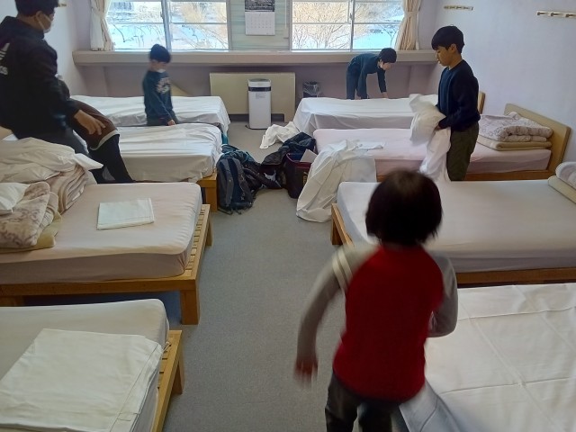 洋室が男子の部屋で、男子は2部屋に分かれて泊まります。和室は女子の部屋です。