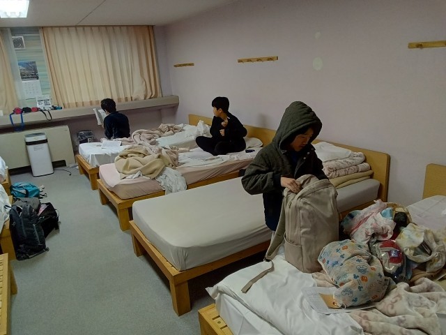 2日目の朝の様子です。検温をして、シーツをまとめたり、荷物整理をしたりします。