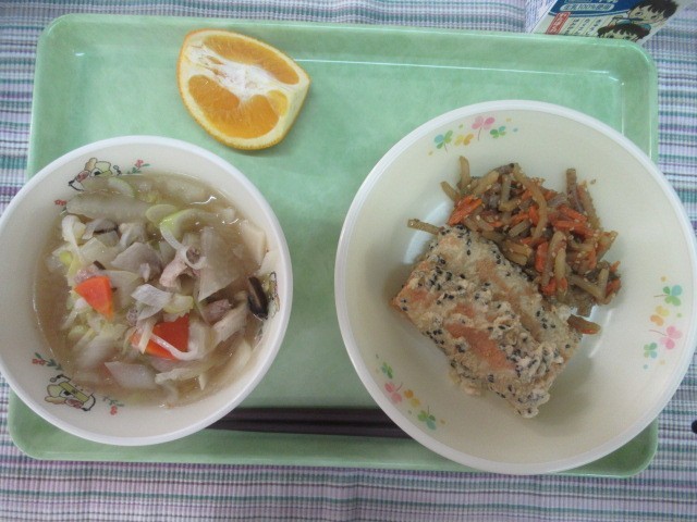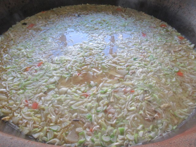 給食で提供しました。ほうとうとは小麦粉を練り、平らに切った