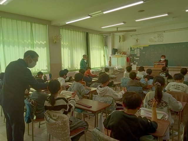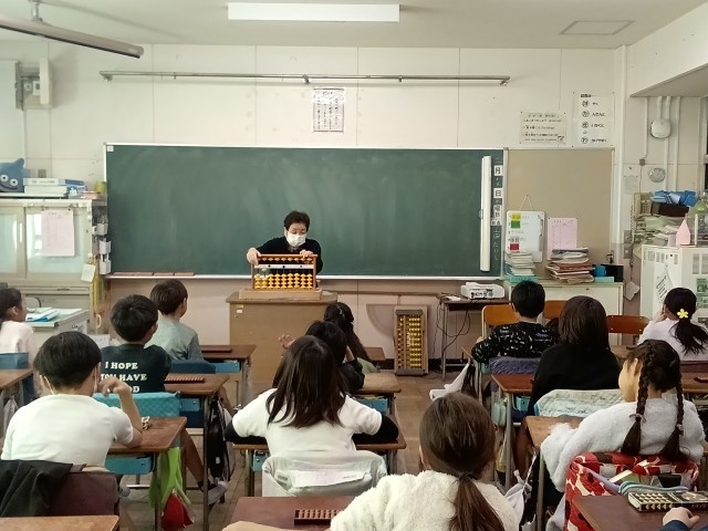 3年生の算数で「そろばん」に取り組みました。東京珠算教育連盟の方々による出前授業でした。子どもたちは、先生方のお話をよく聴きながら、パチパチとそろばんの珠を指で動かしながら計算をしていました。古くから伝わる伝統的な計算道具に触れて、みんな楽しそうでした。