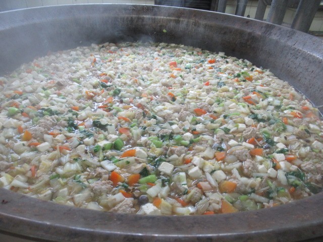 ぶた肉、野菜と調味料を合わせ団子を作り、スープに入れて