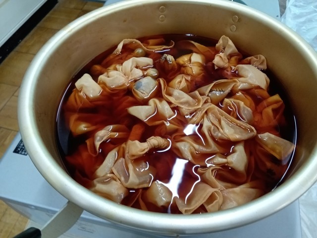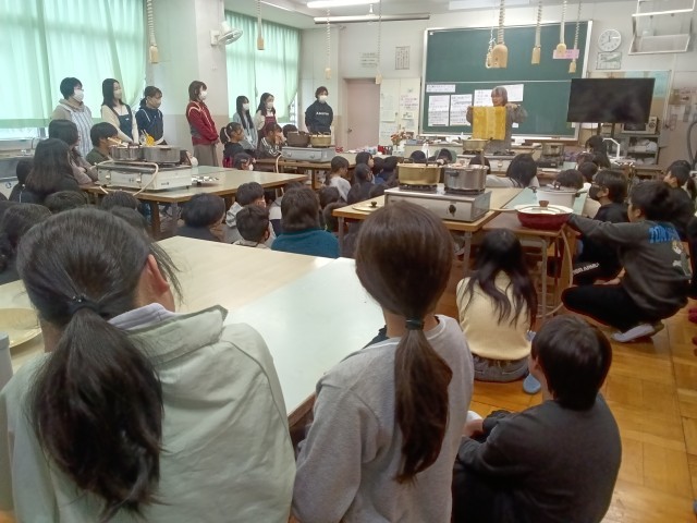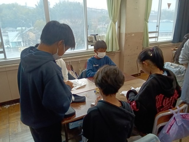 6年生が卒業記念の草木染めに挑戦しました。PTAの皆様のご協力により、ゲストティーチャーを招いて、玉ねぎの皮を使って、絞り染めをしました。鉄媒染とミョウバン媒染の2種類を選んで染めの色の変化も楽しみました。絞り方で模様が変わることにも興味をもっていました。思い出に残る記念品ができました。保護者の皆様、お手伝いありがとうございました。