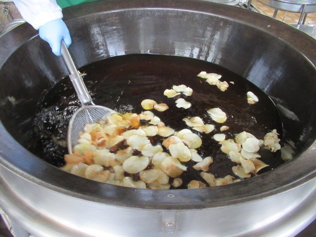ポテトチップスは、調理員さんがじゃがいもの皮をむき、