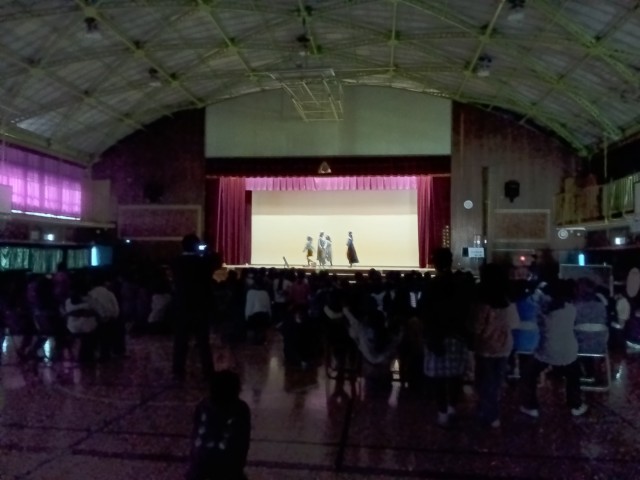 昼休みに、体育館の舞台で、演劇クラブの子どもたちの発表がありました。「シンデレラ」でした。劇中の踊りがあり、ミュージカルのようでした。学校の半分以上の子どもたちが鑑賞していました。満員御礼!演劇クラブの子どもたちは、堂々と演技をしていました。鑑賞している子どもたちも、楽しそうに見ていました。クラブの子どもたちを応援する温かい雰囲気が感じられました。