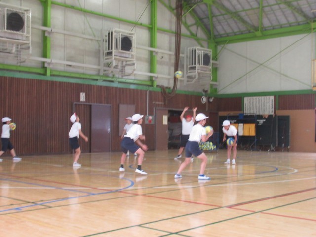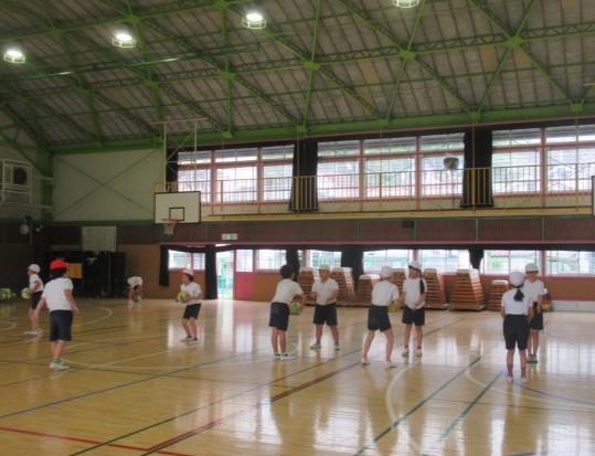 ボールを投げる人は、受ける相手の人がしっかり捕れるように、強さや方向を考えて投げる練習に取り組みました。
