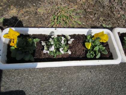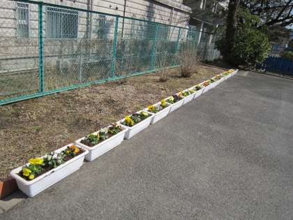 PTAグリーンボランティアの方々が、卒後式と入学式で渡り廊下に飾るパンジーを植えてくださいました。子供たちが喜びます。本当にありがとうございました。