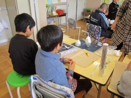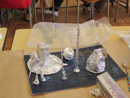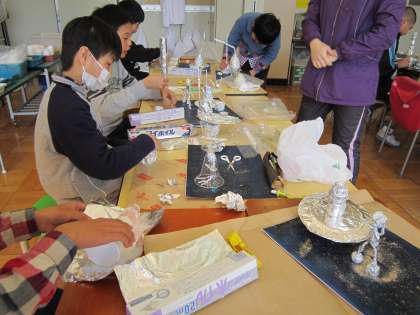 ひまわり学級図画工作科「ふしぎなほし」 アルミ箔を使って宇宙の世界を作りました。よく考え、想像して、ふしぎな世界ができあがり、楽しそうでした。