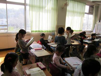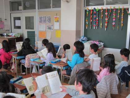 1年国語科「お手紙」 物語文の学習です。はじめの段落を、かえるくん、がまくん、ナレーターの役になって音読していました。お家で練習もしているようで、上手に音読できました。