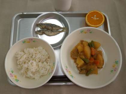 ごまには、ビタミン、ミネラルがたっぷり入っています。栄養的にとても優れた食品なので、給食によく登場する食材のひとつですね。1日に、大さじ1杯から2杯のごまを食べると、とても健康に良いそうです。今日は、ナッツと一緒にごはんに炊き込んで、ごまナッツごはんにしました。よくかんで食べましょう。