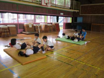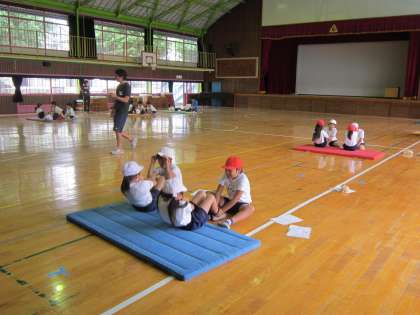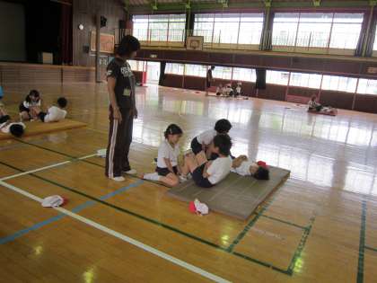 3年体育科 今、体力テストの実施中です。上体おこし、歯をくいしばってがんばっていました。