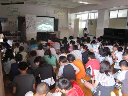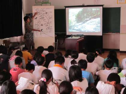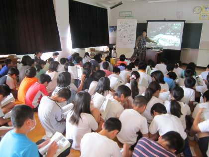 6年日光移動教室事前学習 先生が下見で撮ってきた写真をスライドで見ながら、ハイキングの説明などを受けていました。もうすぐです。楽しみですね。