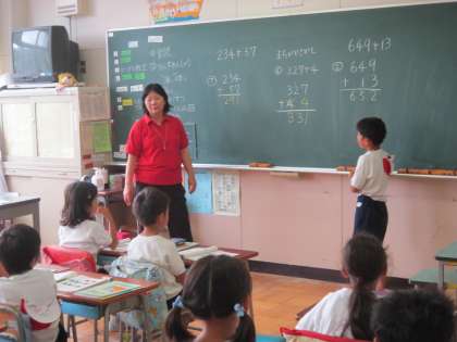 2年算数科「たし算のひっさん」 3けた+2けた繰り上がりありの学習です。今日は計算の間違いみつけをしていました。積極的に間違いを見つけていました。