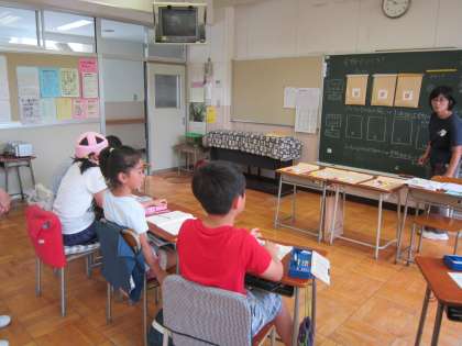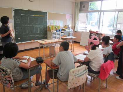 ひまわり学級算数科「全部でいくつ」 たし算とかけ算を使って、全部でいくつのお話を計算します。どんな考え方が計算しやすいか、話し合いながら学習を進めていました。