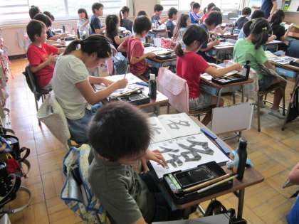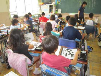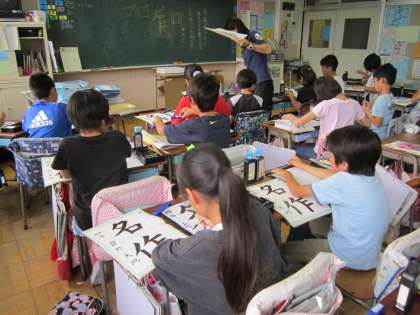 4年国語科「書写」 「名作」という字を書きました。点画に気をつけて集中して練習していました。