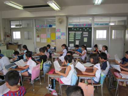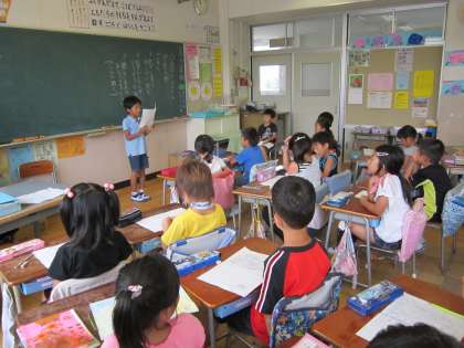 2年国語科「へんしんしてお話を作ろう」 虫、鳥、動物、飛行機など、いろいろなものになったつもりでお話を作りました。今日は、○○にへんしん発表会です。一人一人オリジナルのお話をクラスのみんなに発表しました。